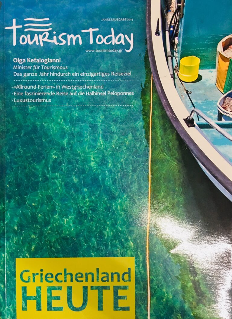 Griechenland Heute is a 100-page travel guide for Greece in German, created in collaboration with the Greek National Tourism Organisation. It includes photos and information about various parts of the